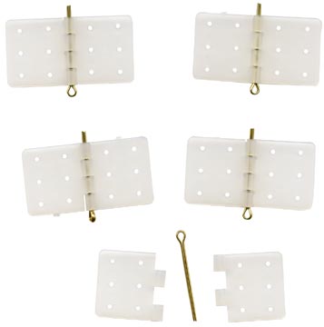 Hey there Snoopy1, those look like Dubro Heavy Duty 1/4 scale hinges (Dubro part # 257). They come in a package of 15 hinges with cotter pins as in the attached pics. I take the cotter pins out and replace them with .047 music wire to get remove-able controls as shown in the attached photo. Just use some tape to hold the 90 degree bend in place and you're done.