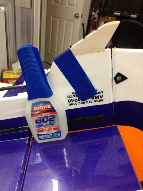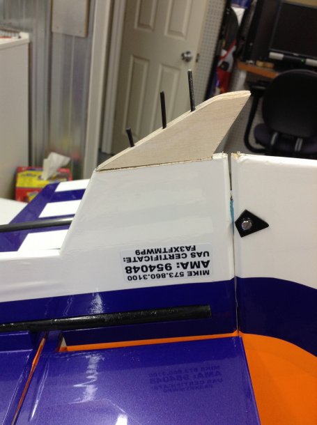 Kooool!!! "I hear a whole lota wood grindin' goin' on"! LolFashioned and attached a new tail skid tonight for the Wild Tiger Profile. I cut it out of some 1/4 " ply. Glued and pinned it in place with Loctite Go2 Glue and carbon rod. Once the glue dries I'll cut the carbon rods off flush and slap a little white paint in it.