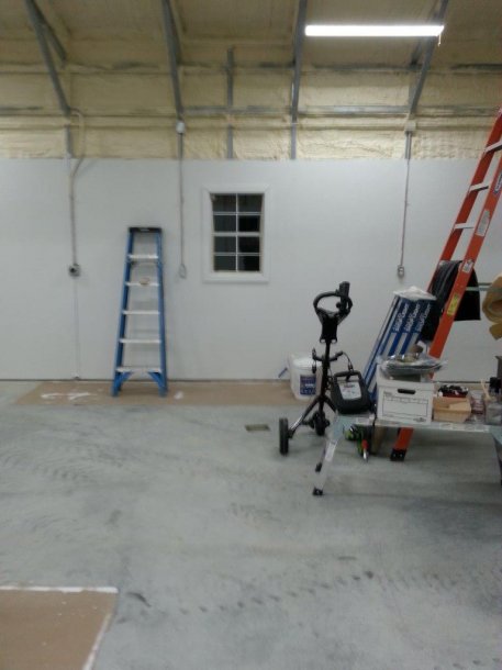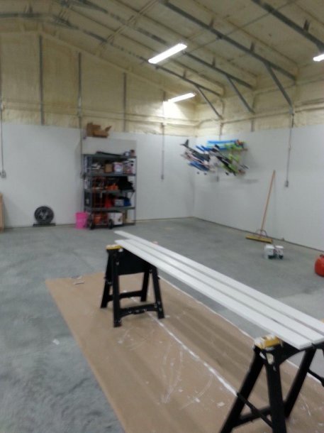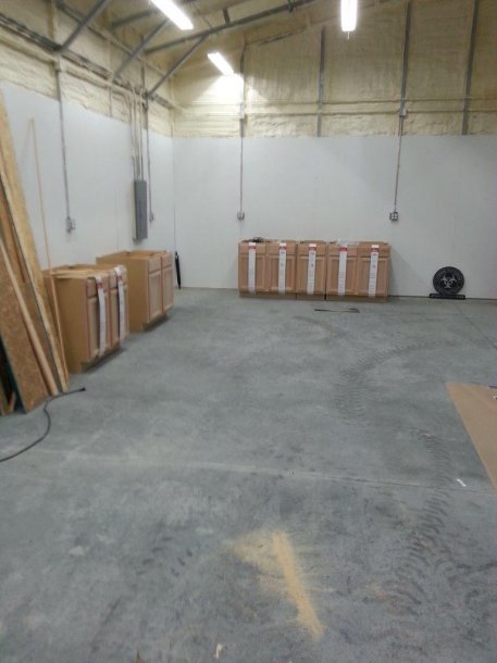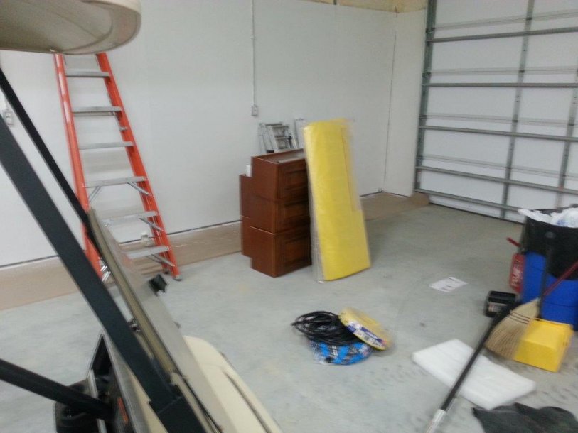 Okay finally made some more progress in finishing my shop. Finished up the walls this past weekend and painted the window trim. Picked up base cabinets this past week. Just need to finish them to match the upper cabinets that I already have. Once they are installed I can start setting up shelving and hopefully start moving in.