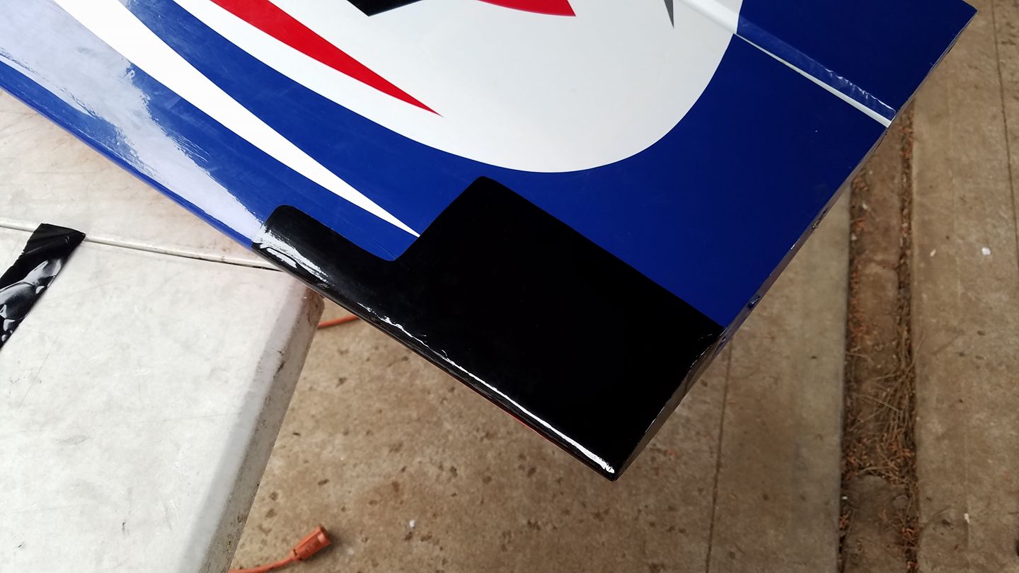 That's there is one of those removable counterbalances. Gonna have to break out the packing tape and thin CA. Oh and if you notice you can see the packing tape already holding the counterbalance on on the other side.