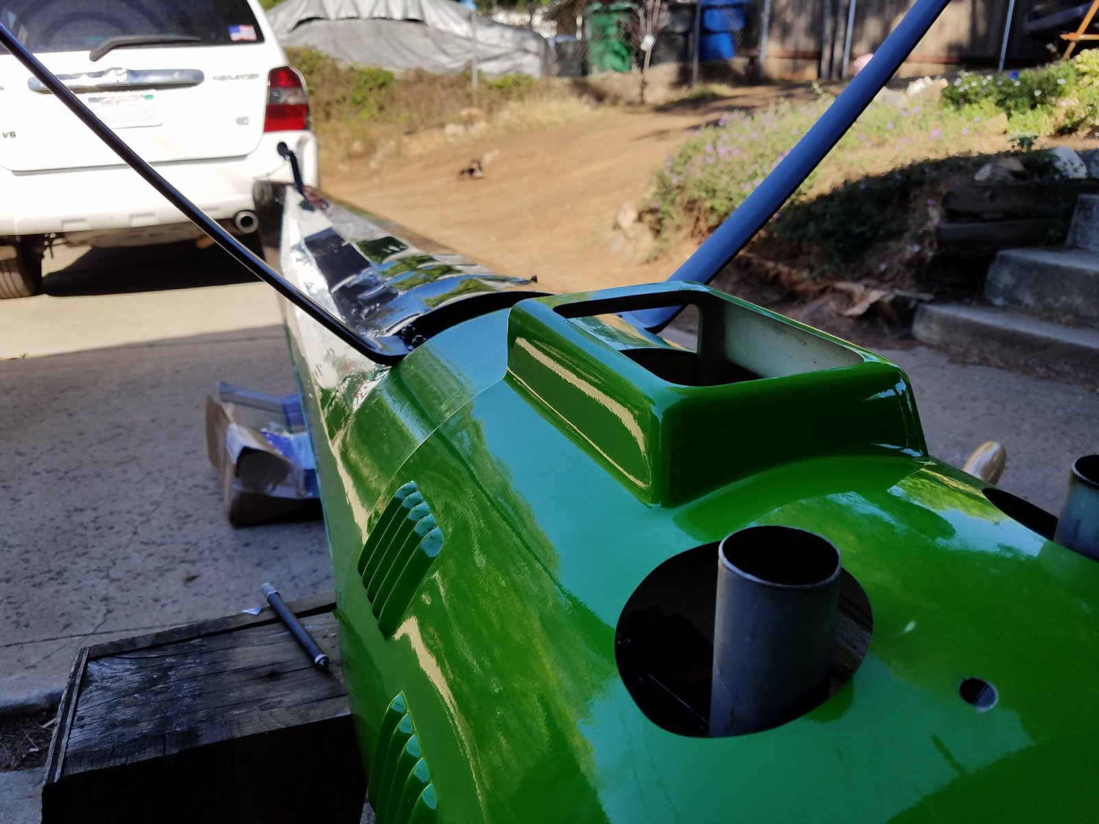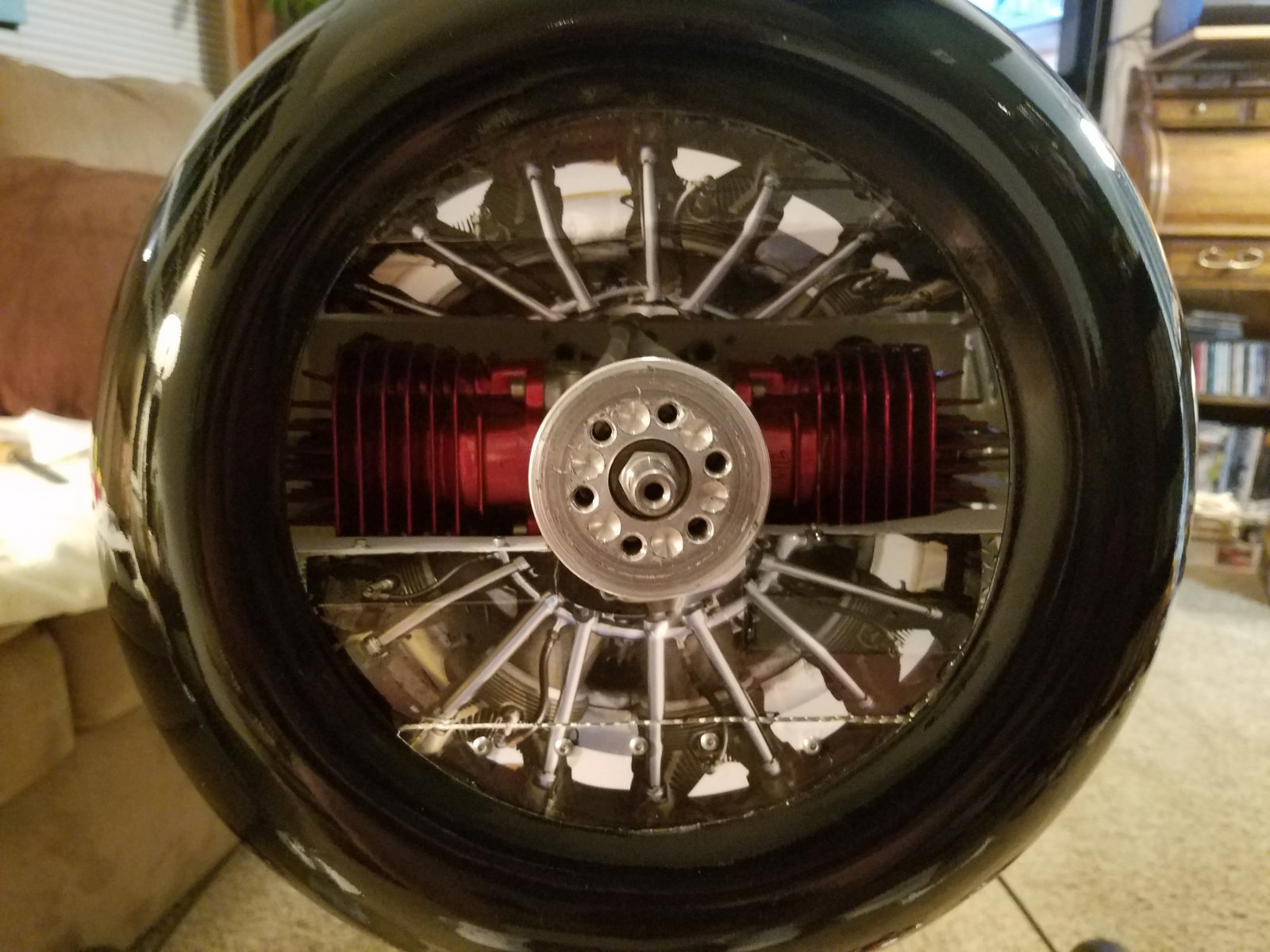 Initially, I see two problem areas. Block off the back of the motor. Also the front of the engine. Air as you know, is like water. It will always follow the path of least resistance. The air has to be forced down through all four cylinders. To do this, you need to block off any where the air can escape before making it to the jugs. A split cowl like my son's big Edge is pretty easy to do. But as you can see with the Yaks one peice round cowl, I had to build around the dub and build a full box that is completely closed off. The air will be forced down through the cylinders. Then with the louvers on the cowl, the 4"×5" open in the bottom of the cowl where the front dumps...dump and the belly vent to allow air to pass out over the cans...there is plenty of positive "pull" to help the air to be drawn out. I will try to get photos of Shayne's P.U., I mean P.A.U. 43% Edge.