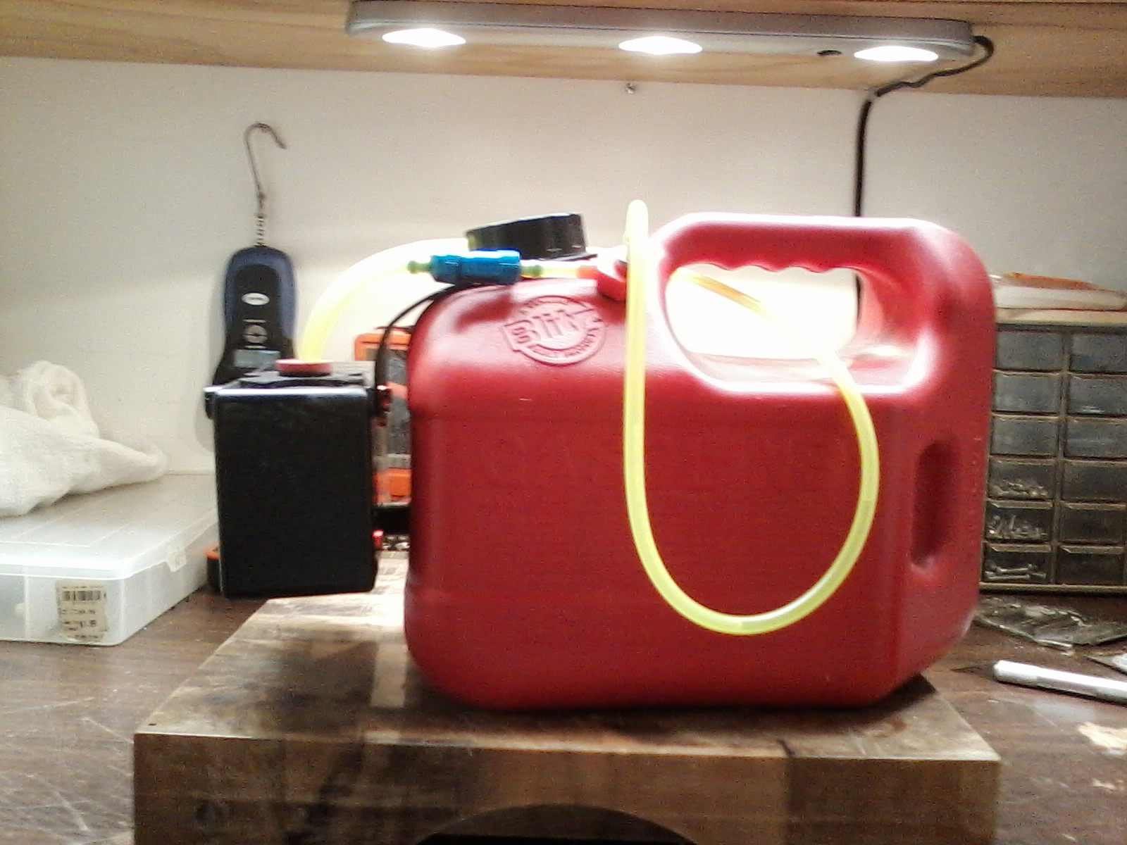 Nice Kelly, Would you post the link to where you got that pump? The pump I purchased for my gas can setup works. But when it comes to filling those Behemoth Fuel tanks, it takes a while. Heck, my unshaven stubble becomes a six inch beard before my tanks are filled. LOL.