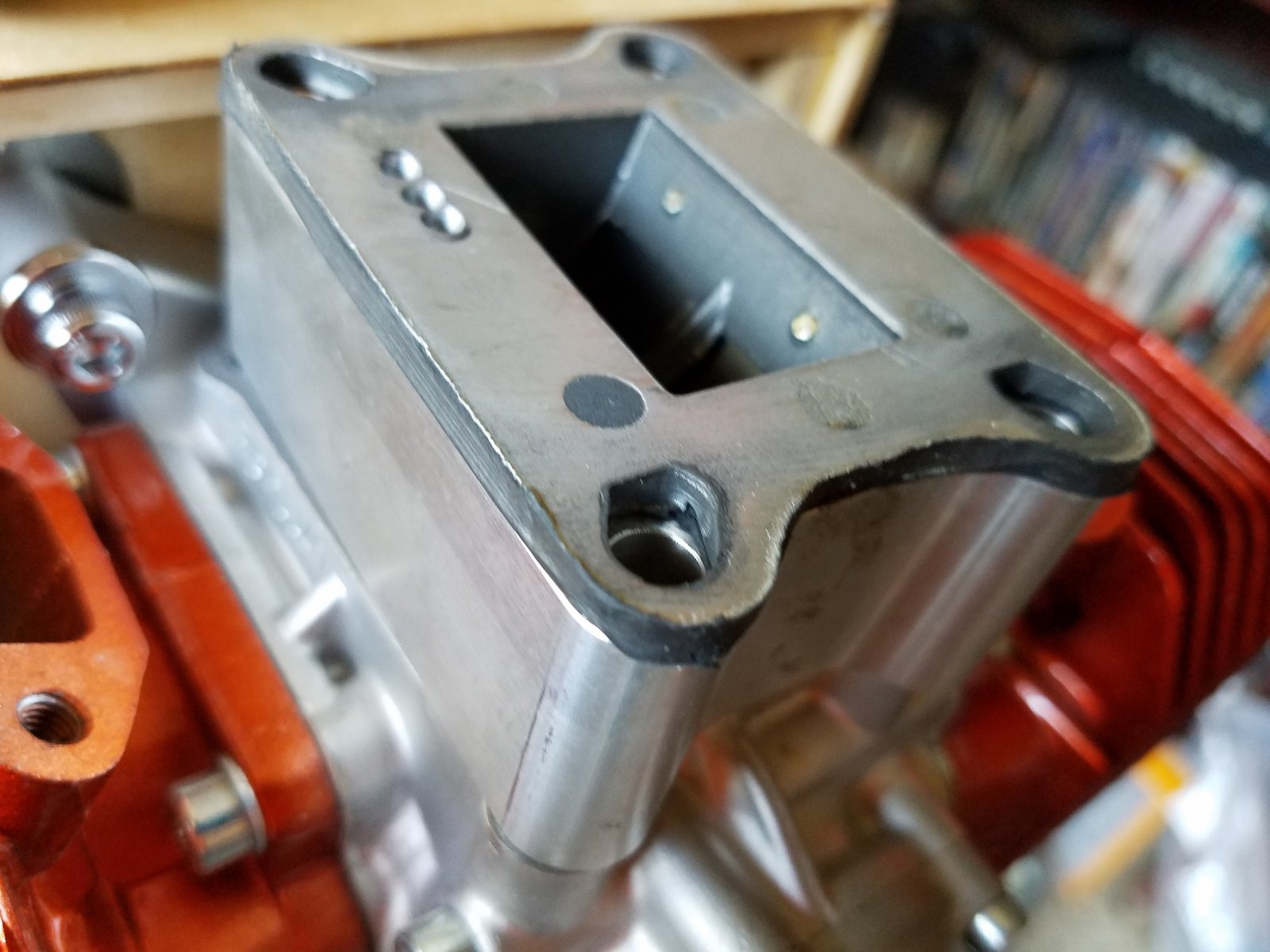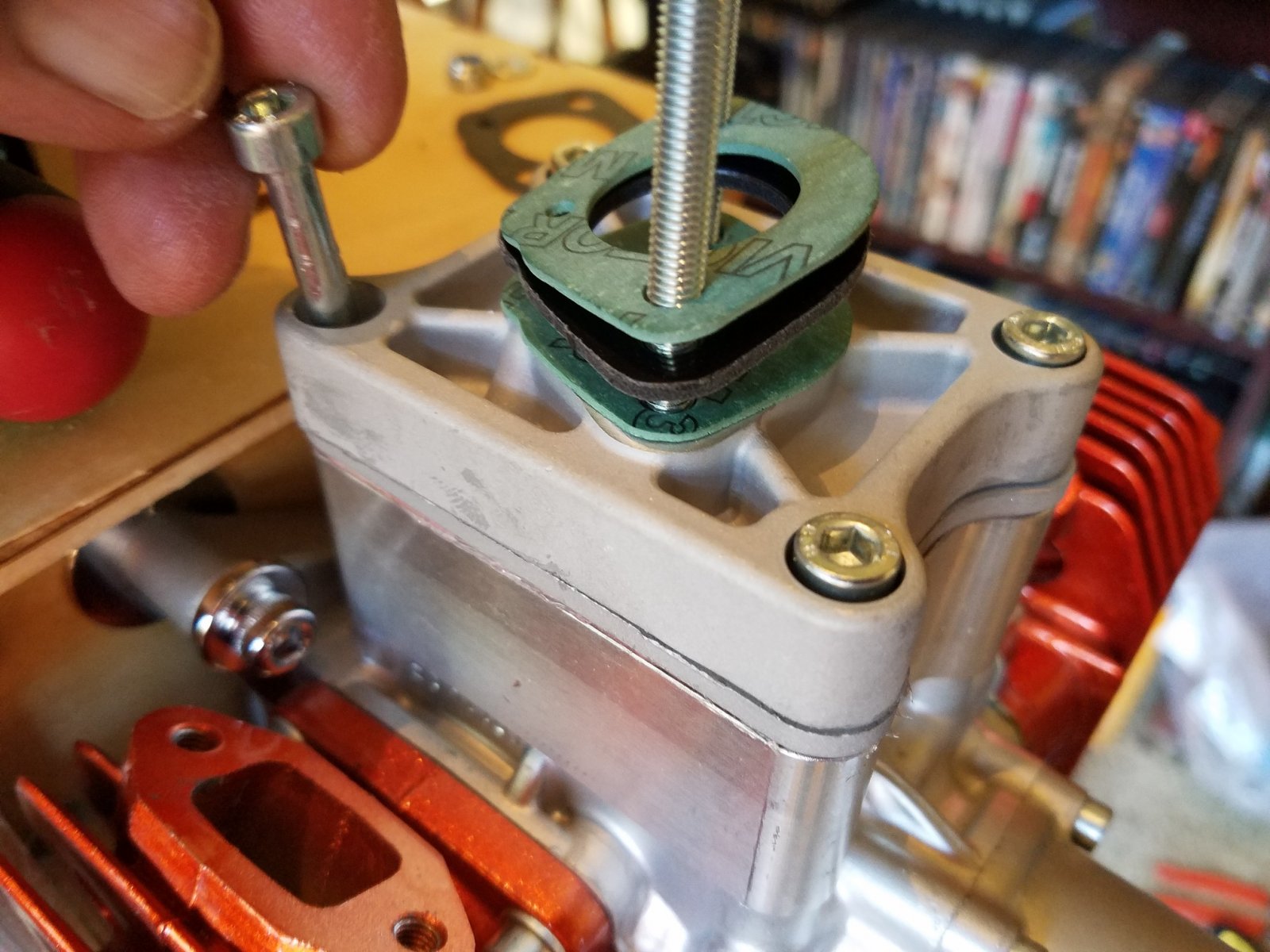 In fact, it turns out there are many manufacturers that "insist" on this particular assembly sealer. Mercedes, Lexus, Ferrari, Jaguar just to name a few. Hmm, "dubs" are in good company. Anyway, a little gasket sealer, (not much, just enough to lightly coat the parameter of the mated parts, and a gasket between the engine and the reed block housing.