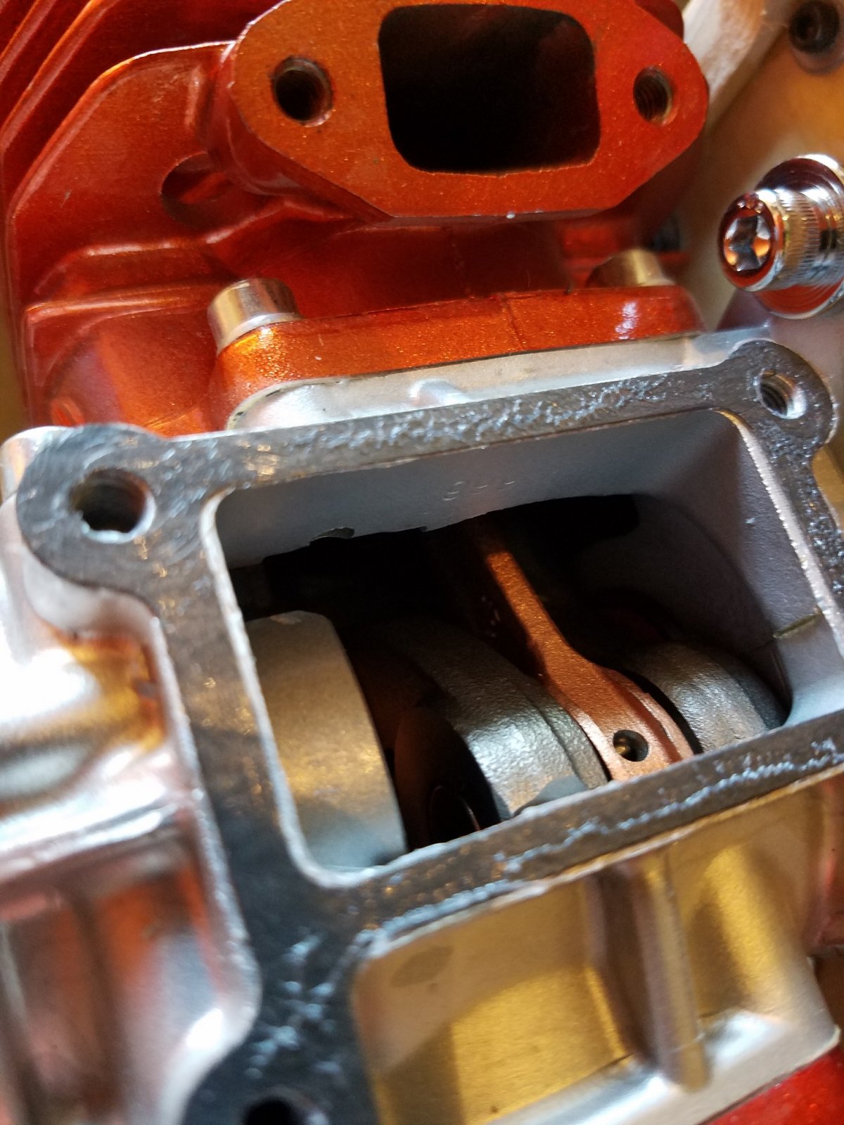 I really didn't need to do this step as it will stay the same. But even though this engine had never seen fuel or even started, I still wanted to put "ALL" new gaskets throughout. Besides, I needed a reason (excuse) to gander inside the workings of this little monster giant. Oh how I love looking inside a red head. LOL