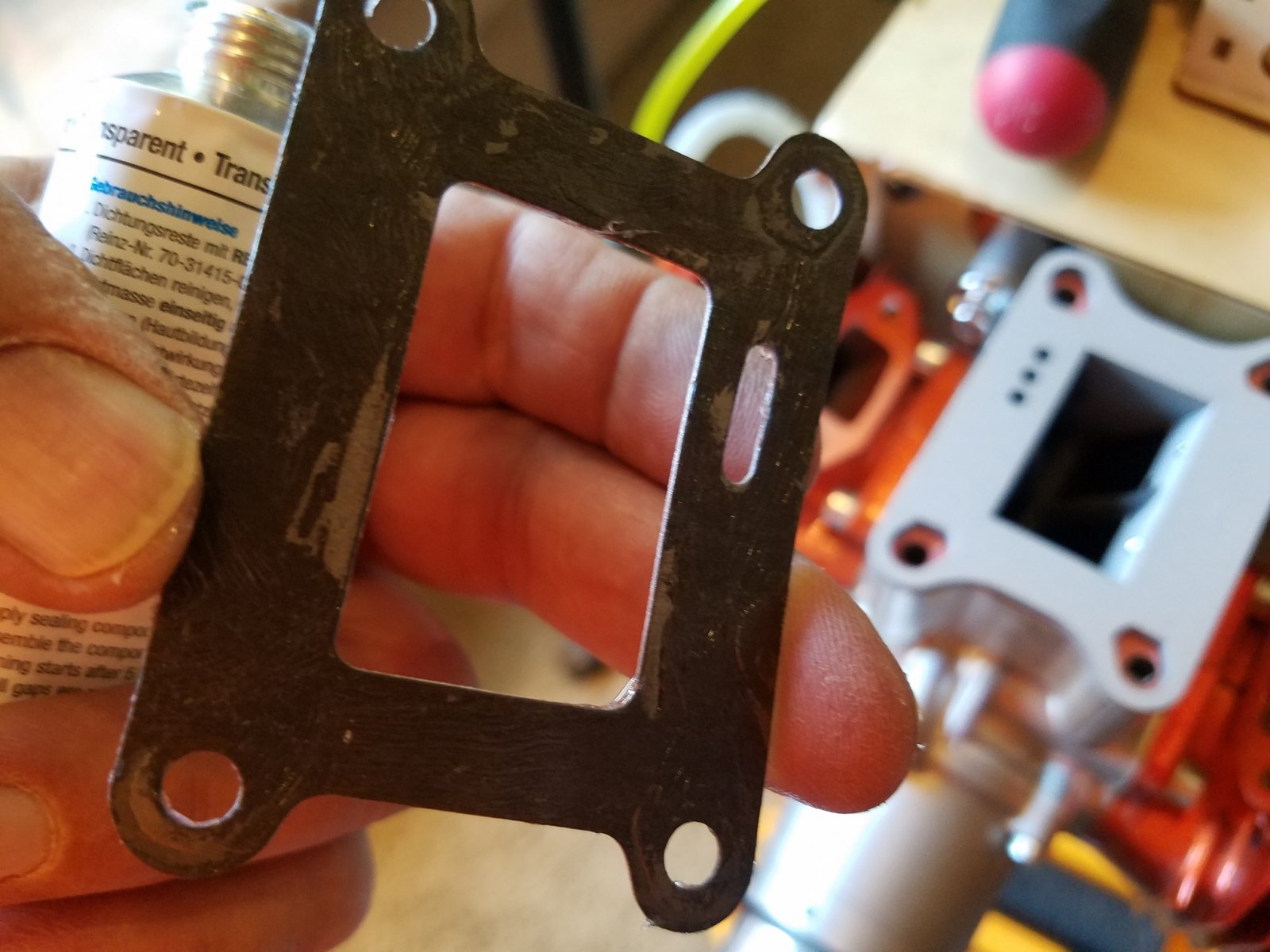 Once I was satisfied all the parts were present and accounted for....LOL....I began re-assembling the 106. First, the same gasket sealer used by 3w in Germany.