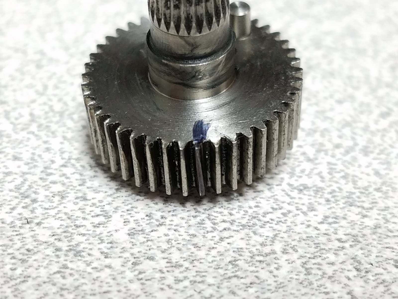 You can see the marked tooth is clearly bent. Swapped in a new output gear and the problem went away. Hundreds and hundreds of flights on this servo, not to mention a number of crashes, and that tooth finally gave up. I'd say this servo has done well over the years.