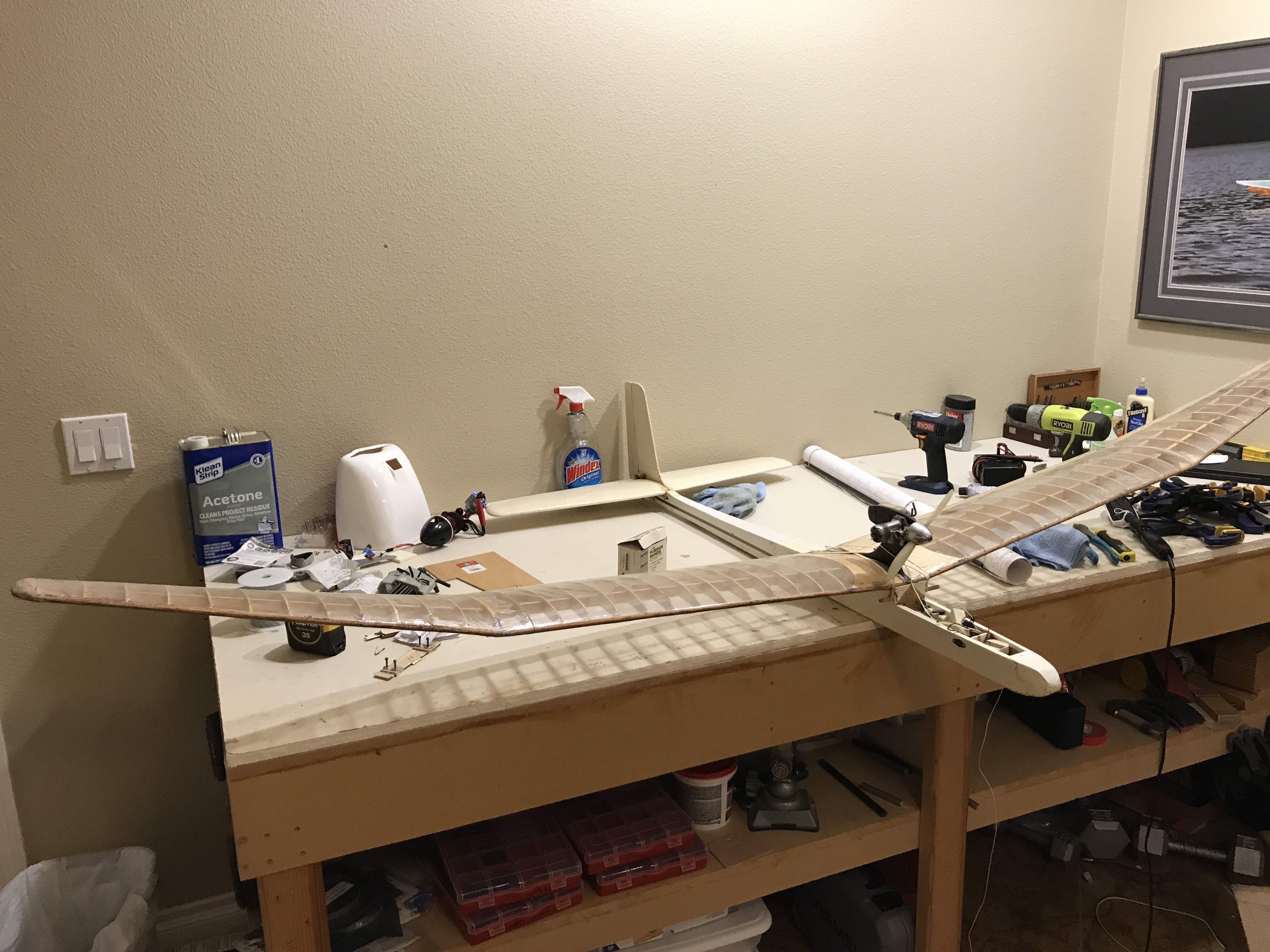 Started on this last night. 97” span. Weighs 3.5#. Tons of lead in the nose. Was given to me back when I was a “kid” about 30 years ago. Been hanging on the wall ever since. I have never flown it. Might scratch out a new fuse to take some weight out of tail and lighten it up a bit. Thinking I might add a 480 size outrunner to the nose, but that gets heavy. Also, the wing has about 3.3 degrees of positive incidence. Is that normal? Don’t know much about gliders....