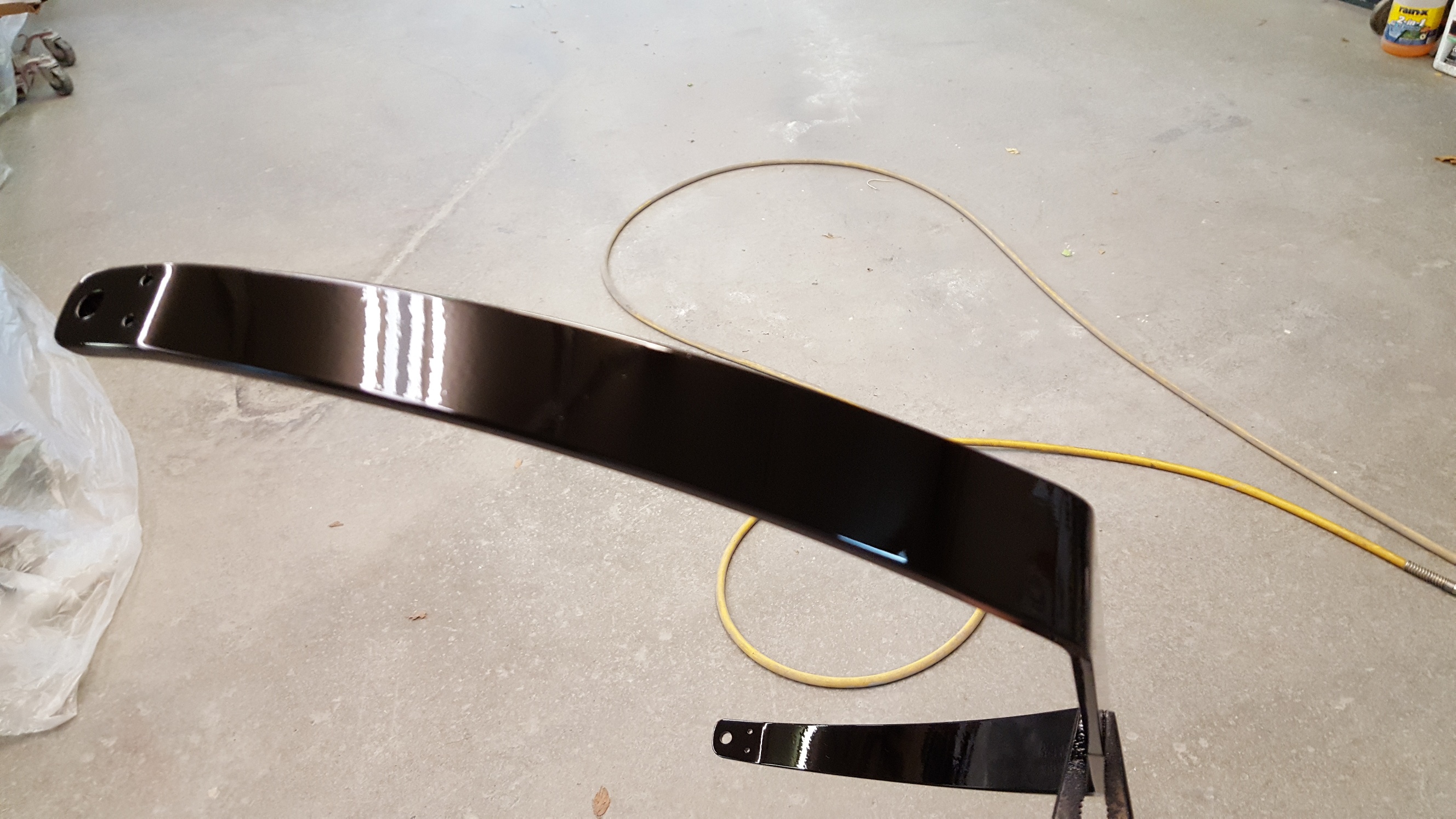 I've been making some slow progress on the new gear for my Hangar 9 Extra. I drilled all the holes in it the other night, and today I painted it black. I'll probably put it on tomorrow.