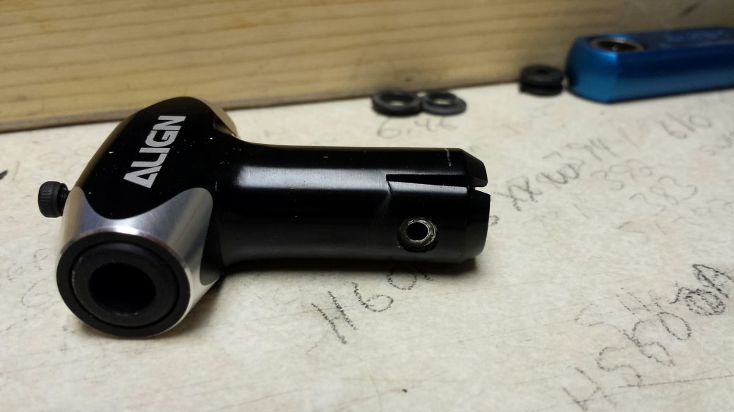 When I was doing some setup on my helicopter today I found this, a crack in the Main Rotor Housing.