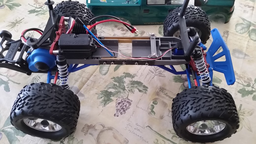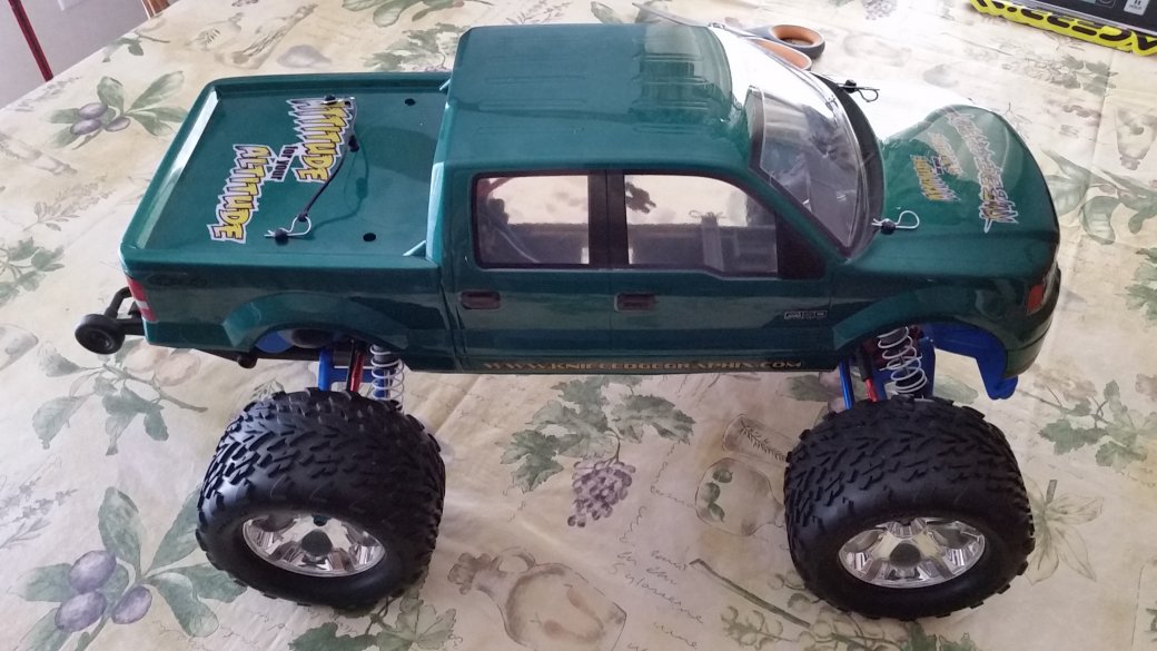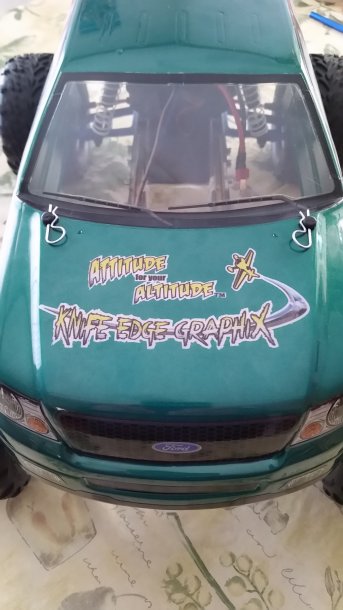 Got the stretched chassis installed. That body was an experiment with printing graphics in reverse on clear vinyl so they can be put on the inside of the body. I got another body, that one will have graphics install and paintend to look just like the KEG truck.