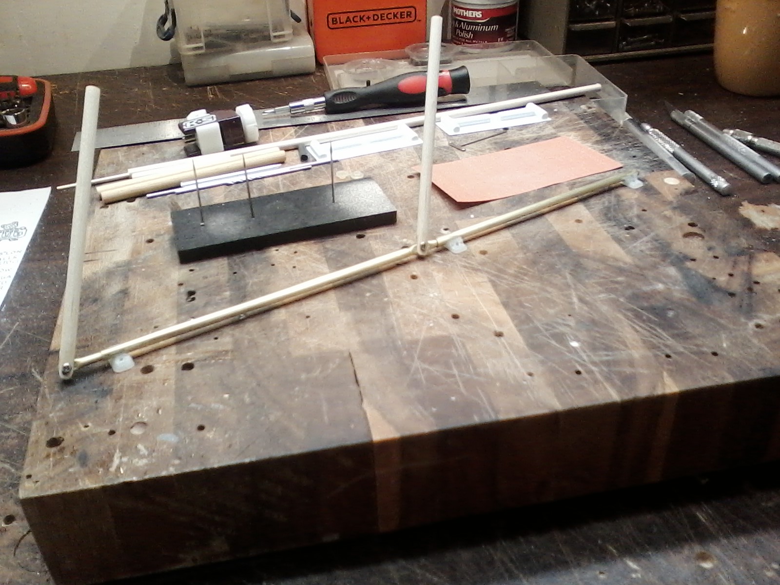 Well work on the profile, it is coming along needed to do something else than make sawdust. So made the landing gear from piano wire I had some 0.177 diameter. Maybe to light but will try it the next size up almost doubled the weight from 3.3 oz. it is difficult to bend two pieces of wire the same, the angle is easy but where the actual bending takes place is difficult but it is done and close enough for me .