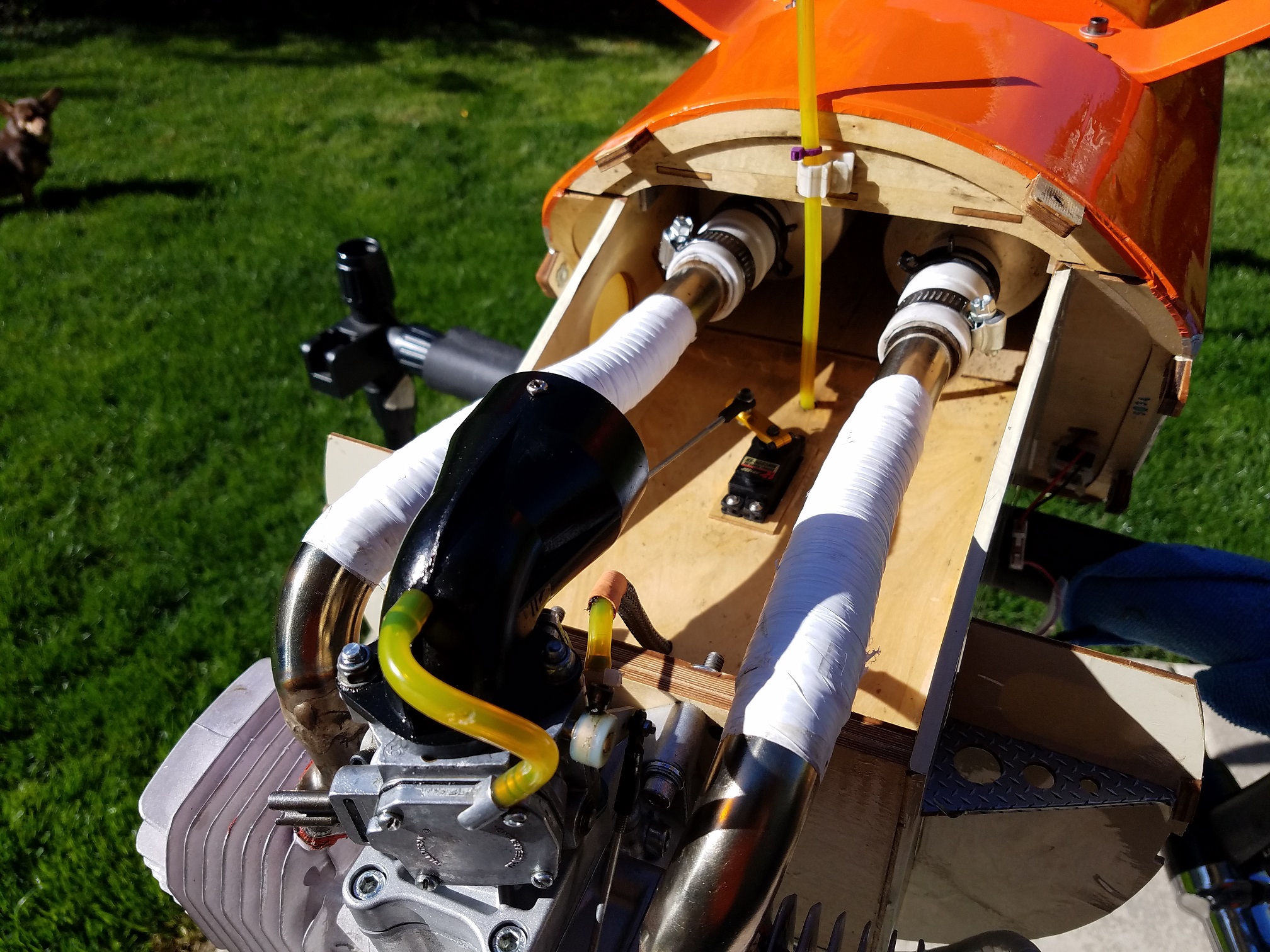 Ok, how about the update to the Baby Yak? I had been quite impressed with the BE62 up front yanking it around, but with the current situation with BE, I decided to go with a more readily and acceptable choice. I really wanted a "dub" upfront, but truthfully there is not a current 3w twin the right size that I want to fiddle with putting up front. Sooo.... DLE 61 to the rescue. Mainly because it was a pretty much remove 62 and install 61 fit. Nothing really to retrofit. I did have to do few modifications but nothing too serious.