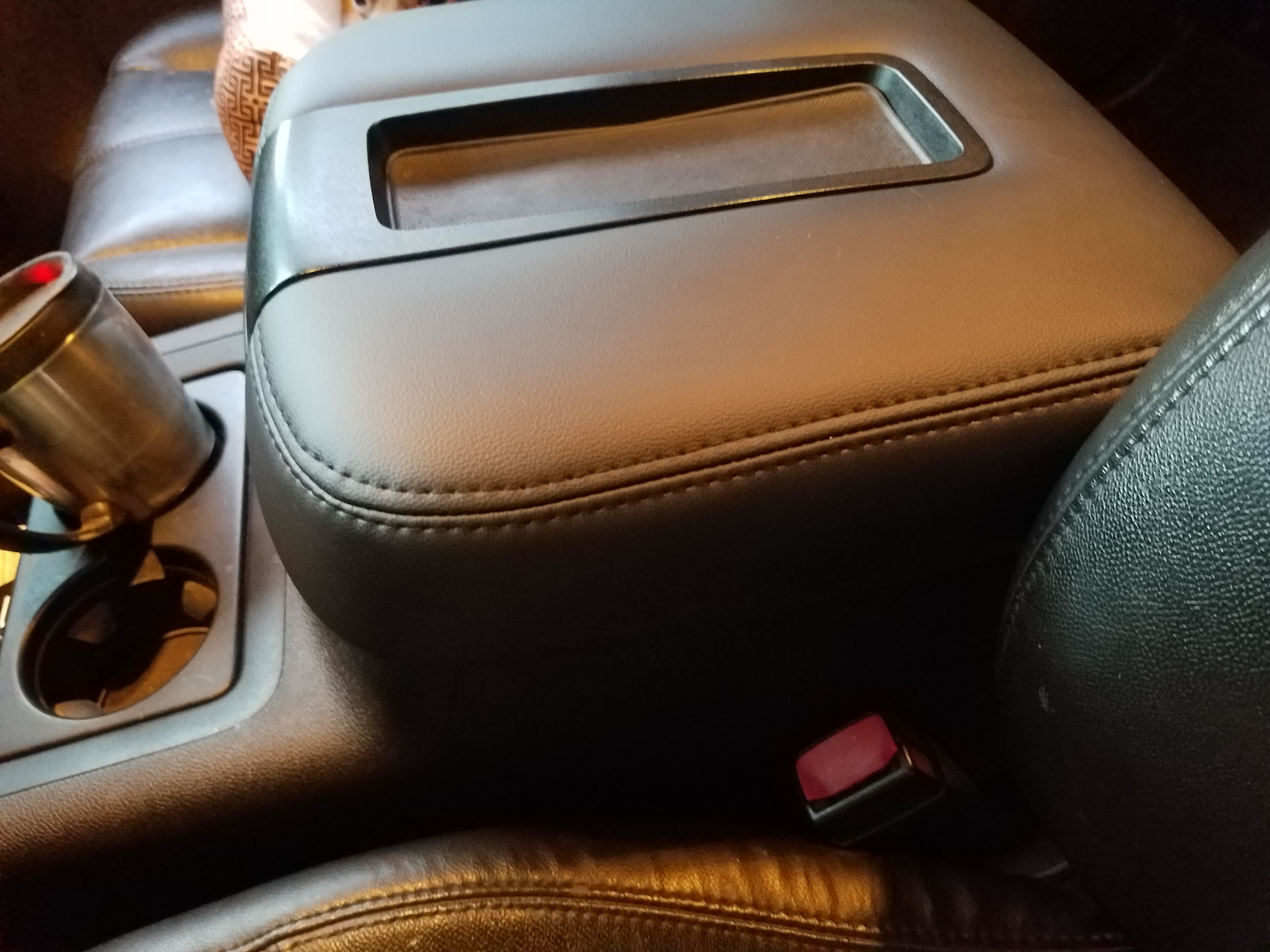 But I guess that is normal when ya gotta fly. I've put 65000 miles on her since I purchased her and dang she's been an awesome "Red Head Haulin'" truck. I figure she's worth a few bucks huh? The console lid leather was starting to crack and the driver's side leather seat stitching is starting to pull loose. So what do we do? Order up the replacement leather covers