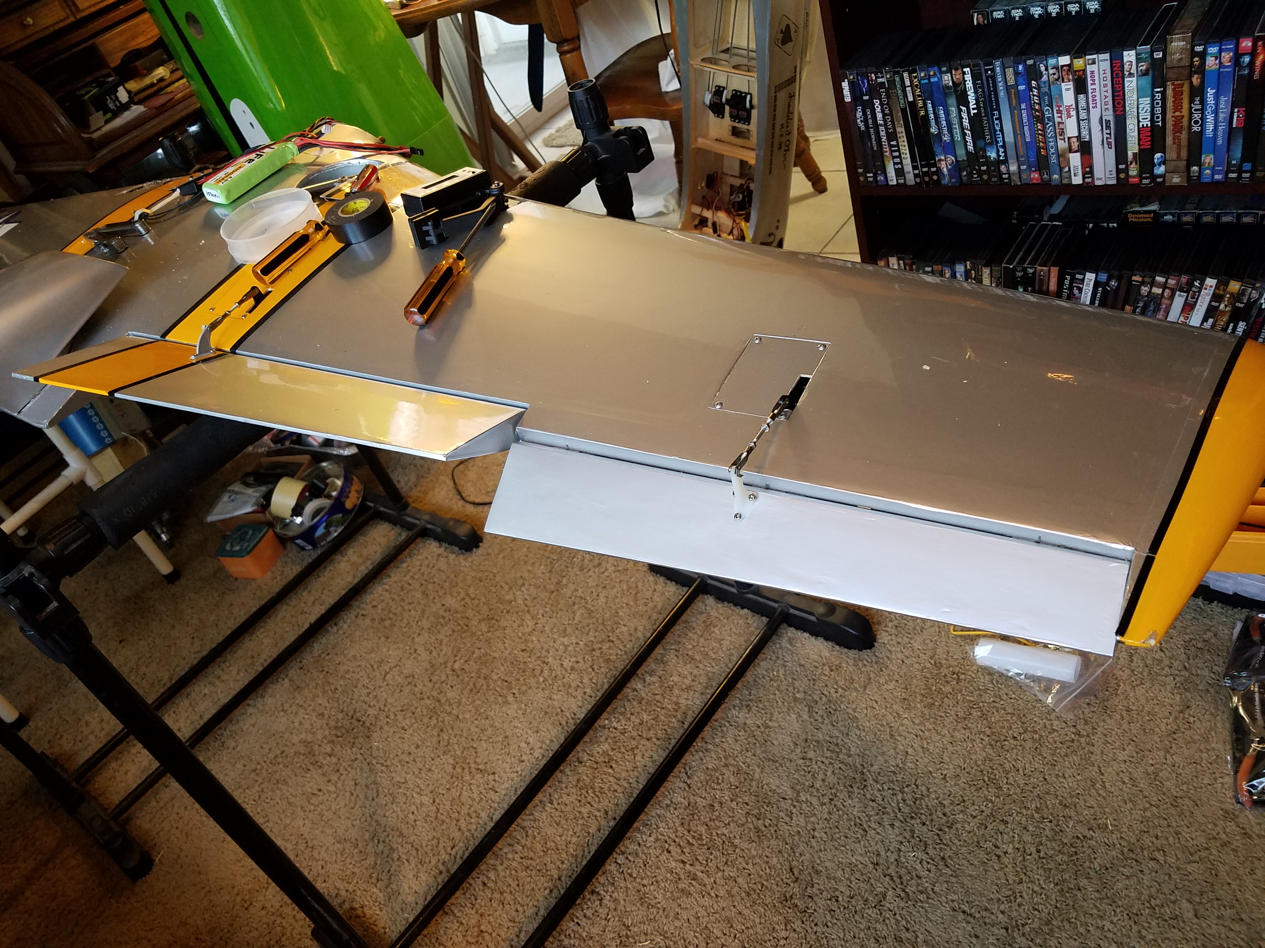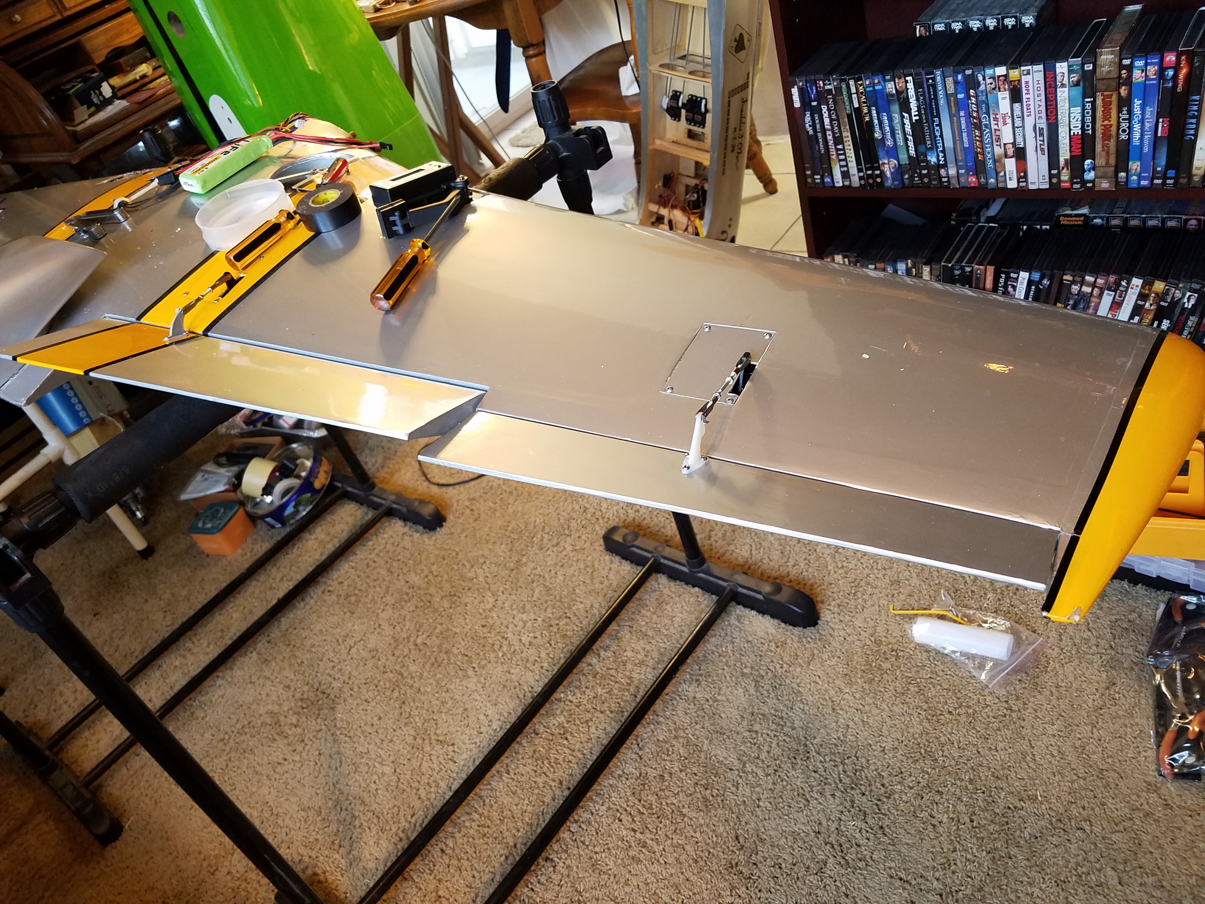 Really not too difficult that is for sure. I have two extra open servo bays that were initially used for the onboard glow driver when she was sporting a Saito 180. And the other one was...hmmm, I honestly don't remember. Oh well, nothing too big to worry about I guess. I will be using the trusty Hitec Aurora A9X on Marie. I flew her with it before, no reason it won't be sufficient again.