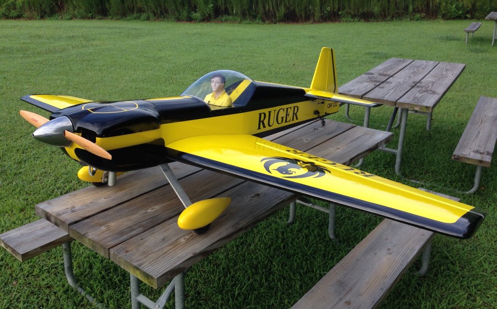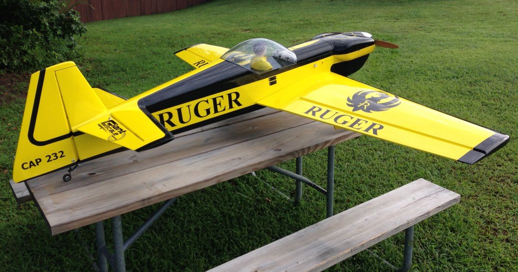 Carden 30% Cap232 pretty much RTF. Picked it up in a trade with @wecoyote Still need to final balance it but other than that it's ready to go. Initial check of the balance shows without my flight batteries in its slightly tail heavy but I expected that. I'm running a dle 55 whereas tom was running a evo58 which is much heavier. What I found the evo is 64oz without ignition and muffler and the dle is 53.9 with ignition and muffler so figure once you bolt those items on and the slightly larger prop the evo could turn I prolly knocked 12oz off the nose. If all else fails and I need more wieght up front I will be moving the rudder servo forward and turning it into a pull pull setup over the push pull it has now.