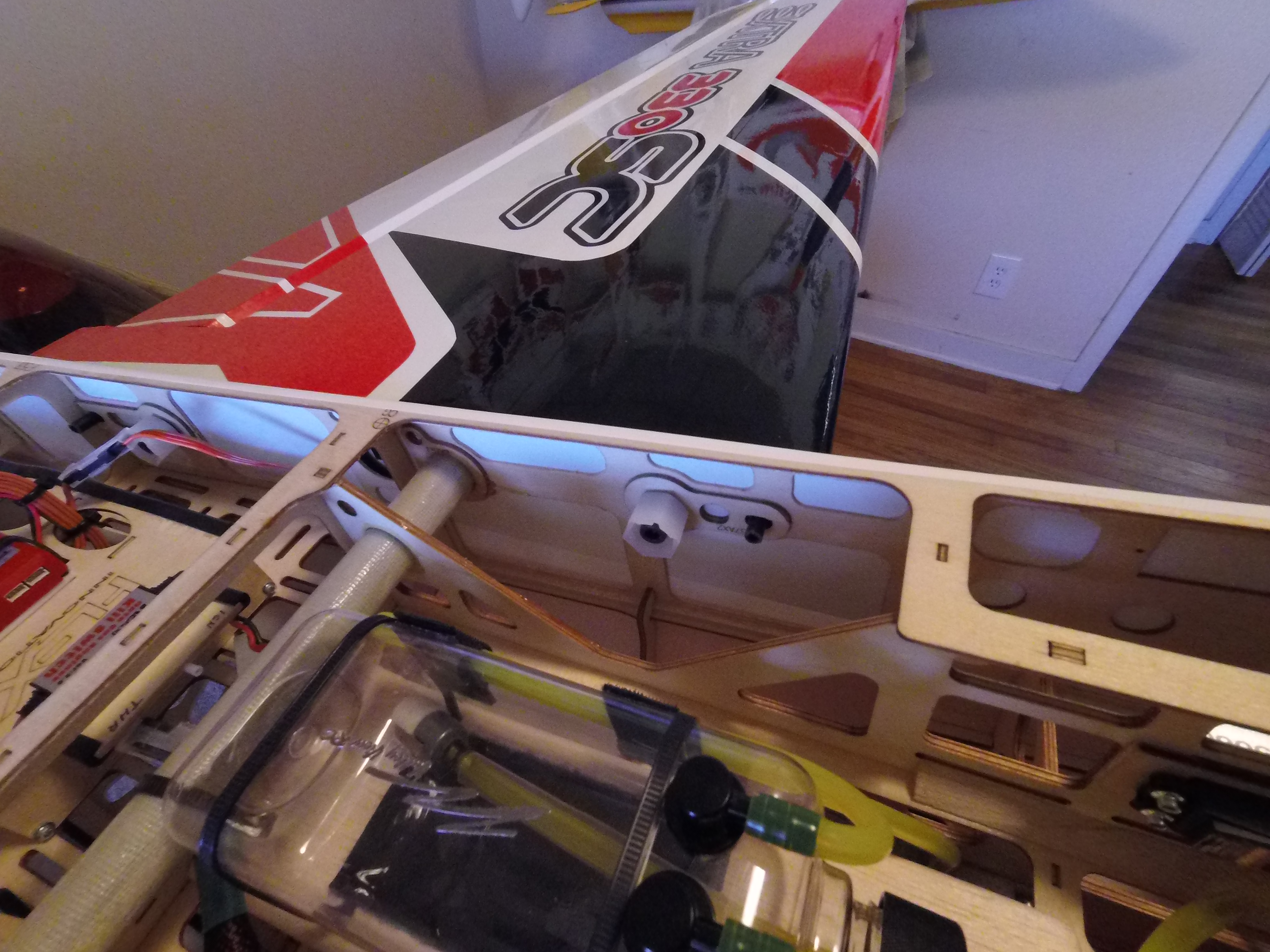 Need more details on the wing bolts see the picture but not enough to figure out exactly what you did.Just took some shots of the finished plane powered up and assembled for flight. The custom wing bolts I made work great and go on / off quickly and easily. Everything working and ready to run. Hope to Maiden soon