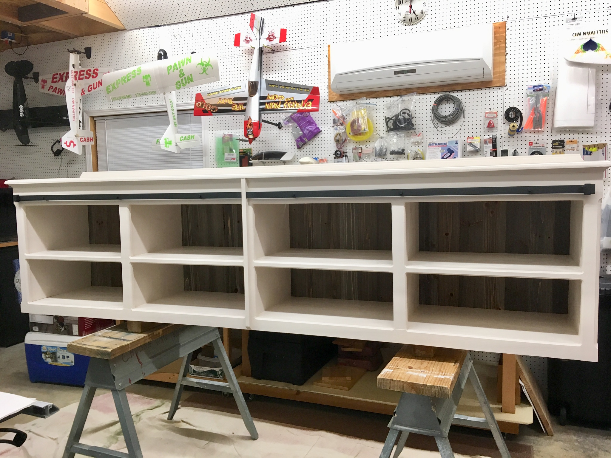 That did not take to long but it does look good. I thing it will be great in the workshop plenty of storage and nice flat top to work off.Almost done with the entertainment center. Just have to install the rollers on the doors. Should have it wrapped up today.