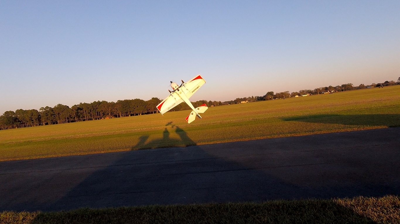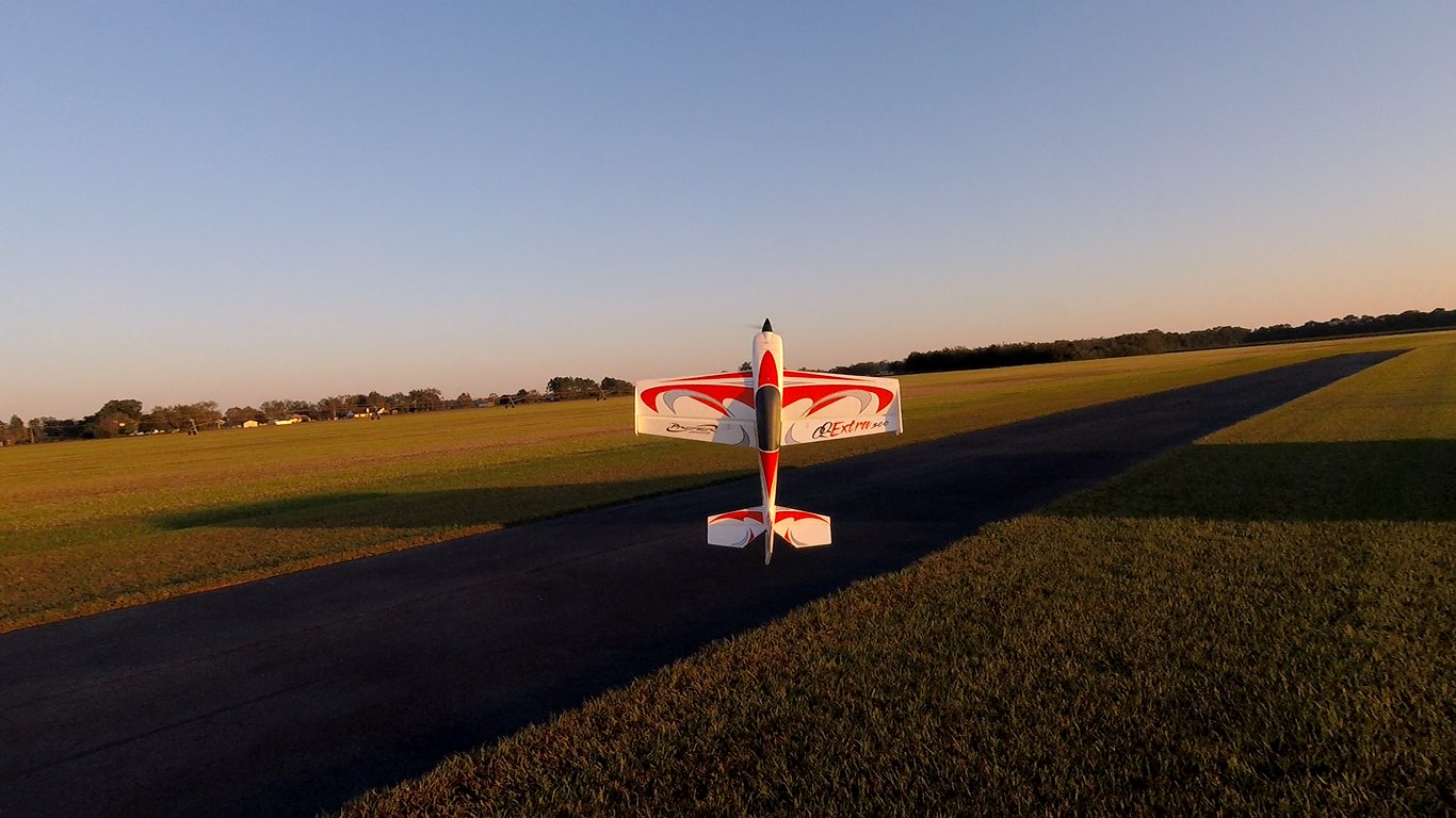 Video is not worth a didly, prop is in the way. Chickened out on the fly through of the shop but did do a quick touch and go off the house. Woo Hoo! This thing is just to much, might go looking for a Laser or Extra in the same range.