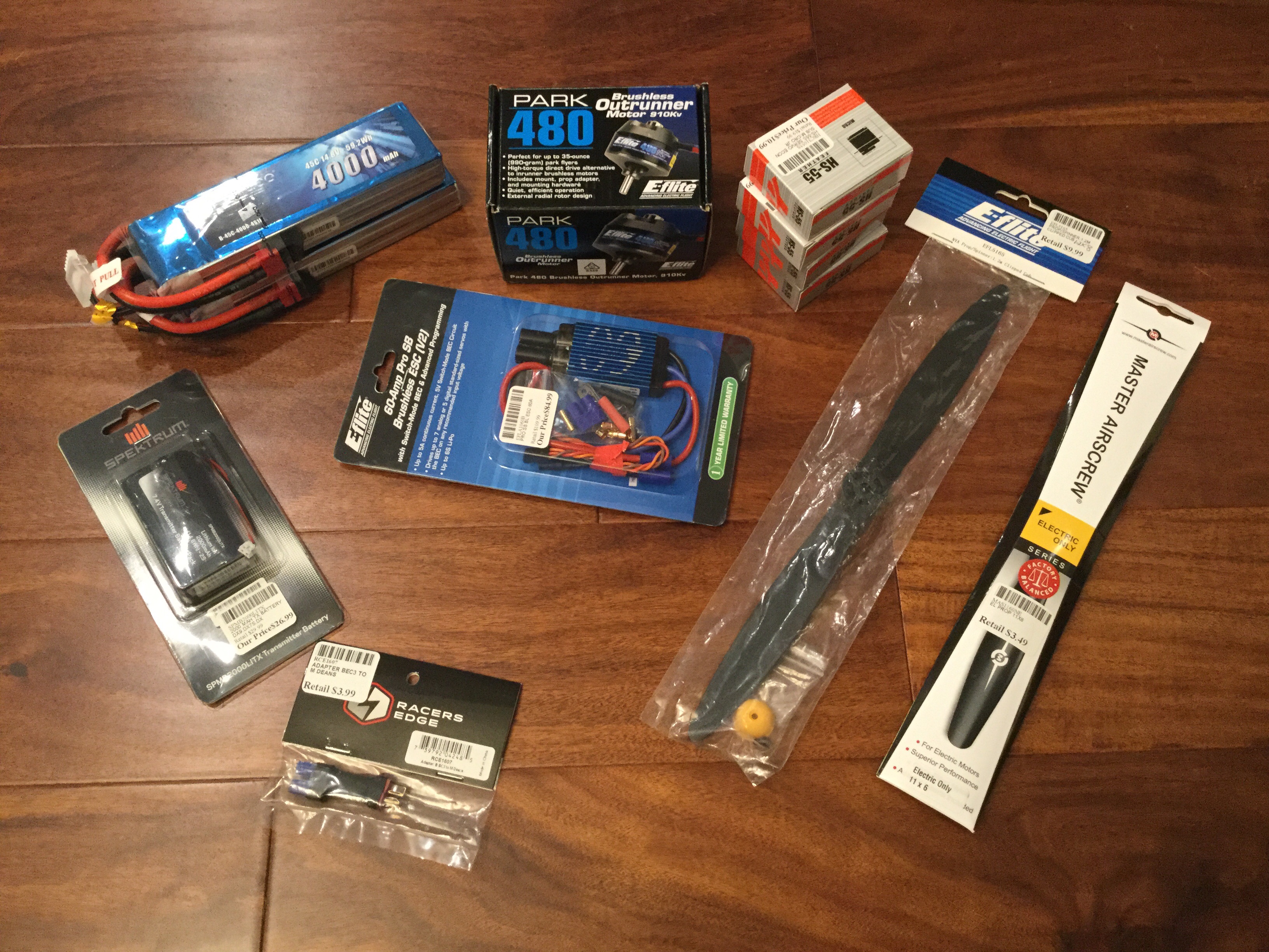 Looks like enough stuff the get one electric plane in the air. That should keep you busy for a few days what plane is it.Visit to the LHS today for a few goodies. Unfortunately, nothing here is giant scale.